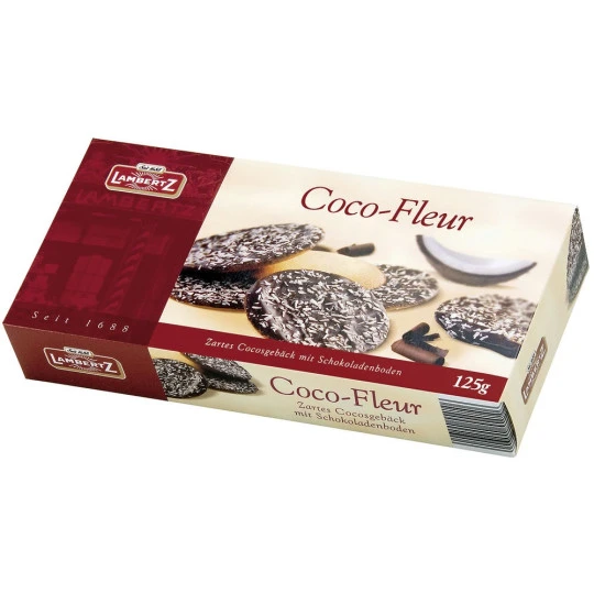 Zutatenverzeichnis: Zucker, WEIZENMEHL, pflanzliches Fett (Palm), Kakaomasse, WEIZENSTÄRKE, Kakaobutter, Kokosraspel (2%), BUTTERREINFETT, HÜHNEREIWEIß, SüßMOLKENPULVER, Emulgatoren (Mono- und Diglyceride von Speisefettsäuren, SOJA-Lecithine), natürliches Aroma, Salz, Produkt kann Spuren von ERDNÜSSEN, SCHALENFRÜCHTEN, SESAM enthalten.